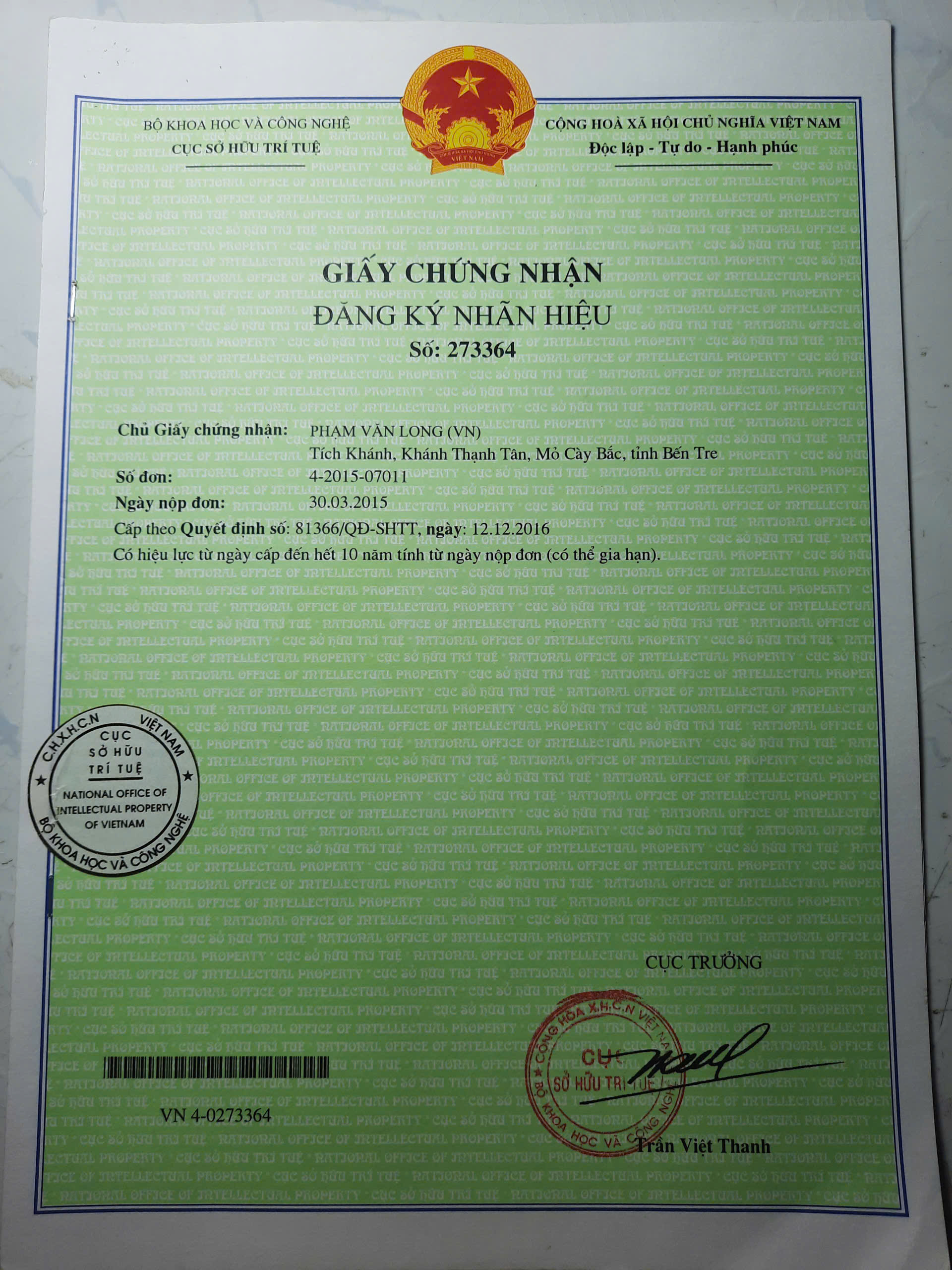 Ngày 15/04/2026, ông Phạm Văn Long đã hoàn tất các khoản phí lệ phí cho việc cấp văn bằng bảo hộ thương hiệu CLASSHOME, đây là văn bằng thứ 05 mà ông Phạm Văn Long đăng ký bảo hộ. Ông Phạm Văn Long, Giám đốc - Chủ sở hữu doanh nghiệp Công ty TNHH MTV Phạm Gia Home cũng là chủ sở hữu duy nhất các văn bằng bảo hộ nhãn hiệu độc quyền thương hiệu VIN HOME - WINHOME. THƯƠNG HIỆU CLASSHOME ĐƯỢC ĐĂNG KÝ BẢO HỘ CHO NHIỀU NHÓM HÀNG HÓA/DỊCH VỤ, CỤ THIỂ NHƯ SAU: